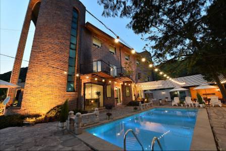 このペンションは、古風で落ち着いた雰囲気を持つ、古いペンション のような趣があります。個別の温水プール(別棟温泉)が設けられており、特にその魅力は大きいです。夜間は照明がなかったため、最初は少し戸惑う sempat namun, 部屋の照明が入ると、その雰囲気は格段に向上しました。まるで、ファンタジー のような空間を作り出しているようです。